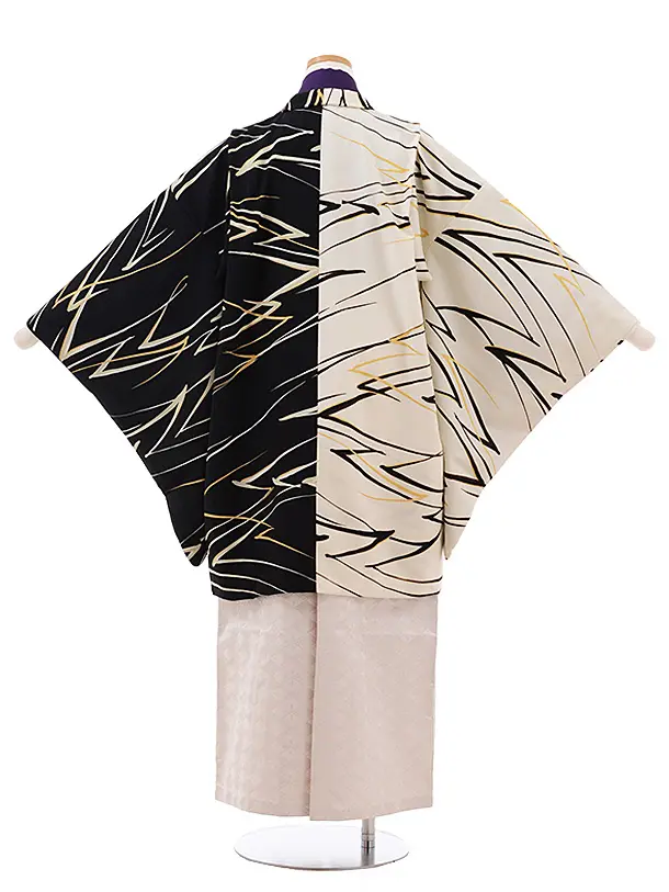 ジュニア袴男児Z056 JAPANSTYLE 黒 白×ベージュラメ菱袴