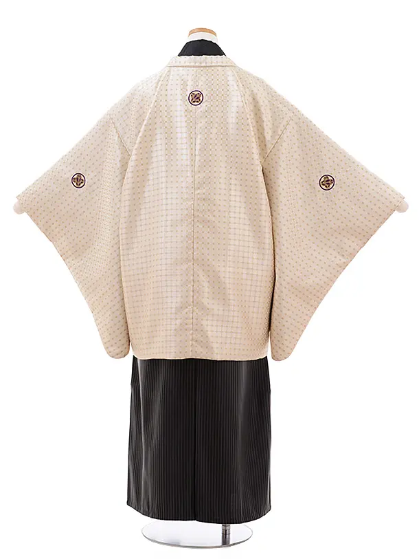 ジュニア袴男児Z066 ベージュドット紋付×黒ストライプ袴
