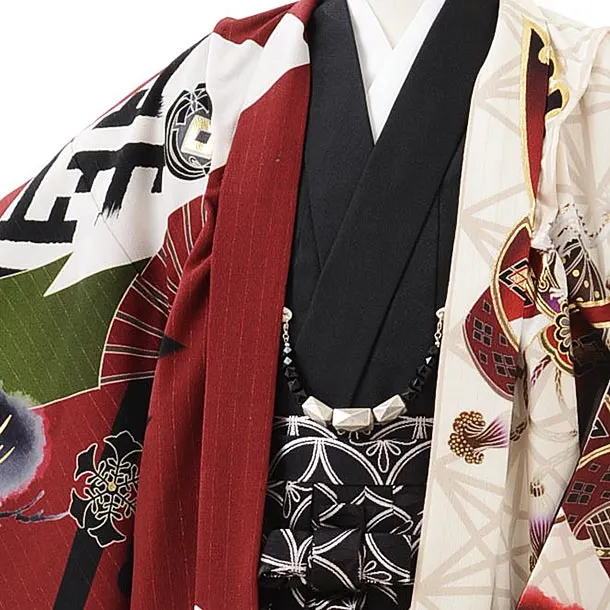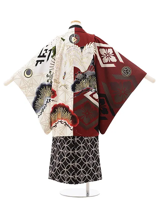 ジュニア袴男児Z165 JAPANSTYLE絵羽鷹に松白赤×黒袴