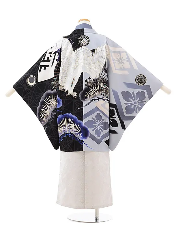 ジュニア袴男児Z166 JAPANSTYLE絵羽鷹に松黒サックス×白袴