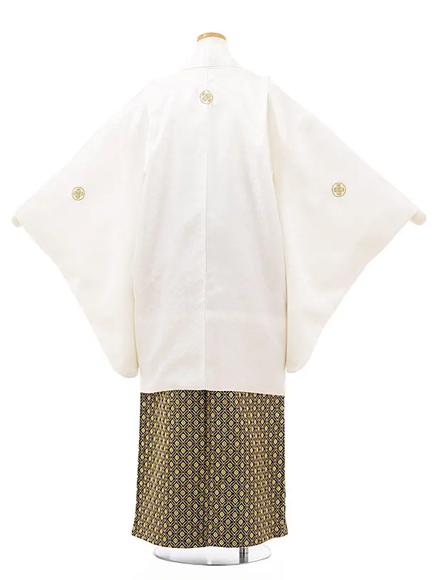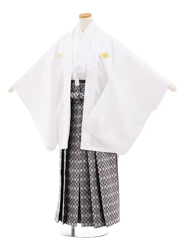小学生卒業袴レンタルZ174白紋付x黒ゴールド袴