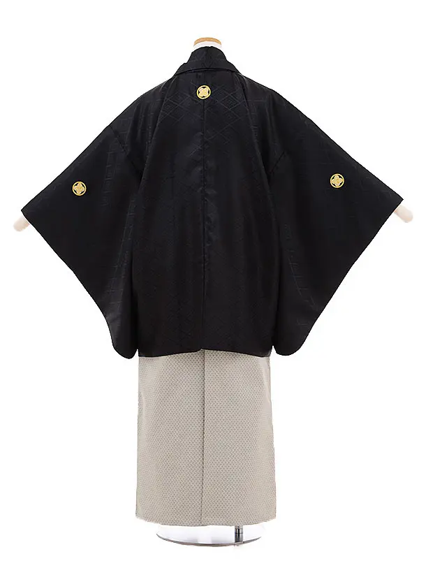 かんたん着付 小学校 卒業式 男の子 袴 Z232 黒地菱柄紋付×グレー袴