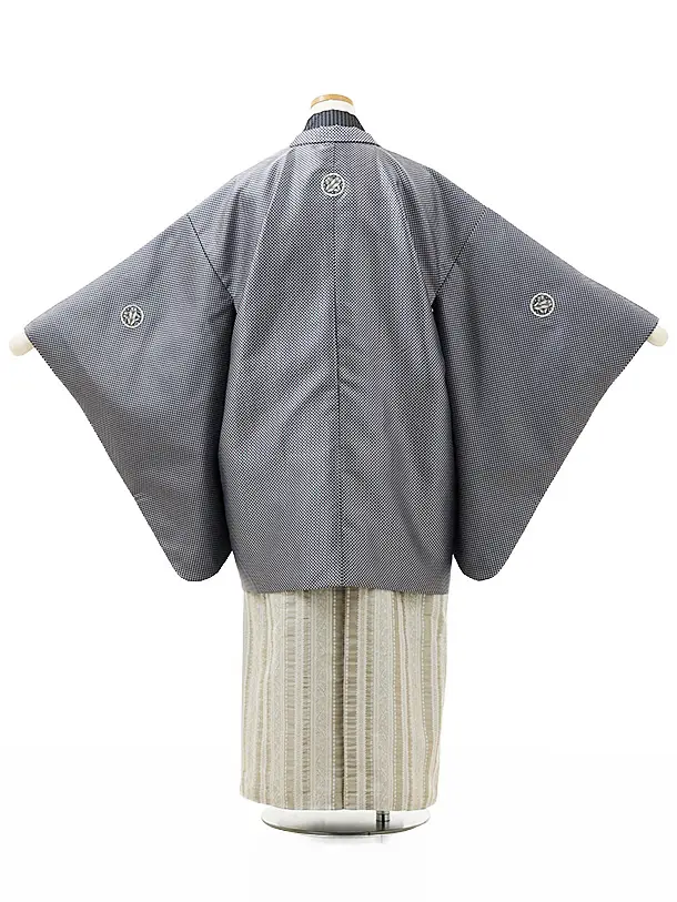 小学生男児袴レンタルZ302花わらべ紺斜格子×グレージュ縞