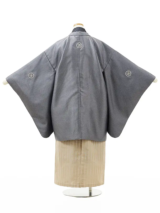 小学生男児袴レンタルZ303花わらべ紺斜格子×ベージュ