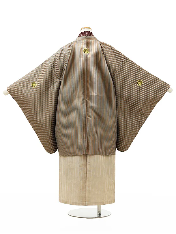 小学生男児袴レンタルZ309花わらべベージュストライプ×ベージュ
