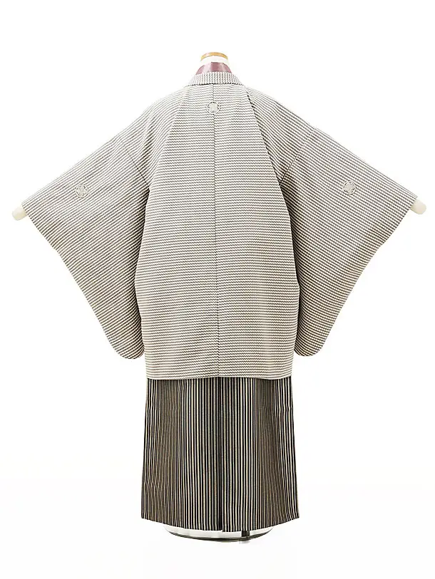小学生男児袴レンタルZ311 グレー千鳥格子紋付×茶シルバーストライプ