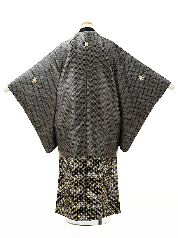 小学生男児袴レンタルZ312 グレー七宝紋付×黒ゴールド