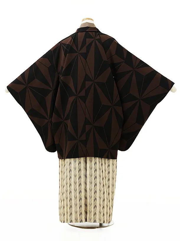 小学生男児袴レンタルZ325 黒茶変り麻の葉×ベージュ
