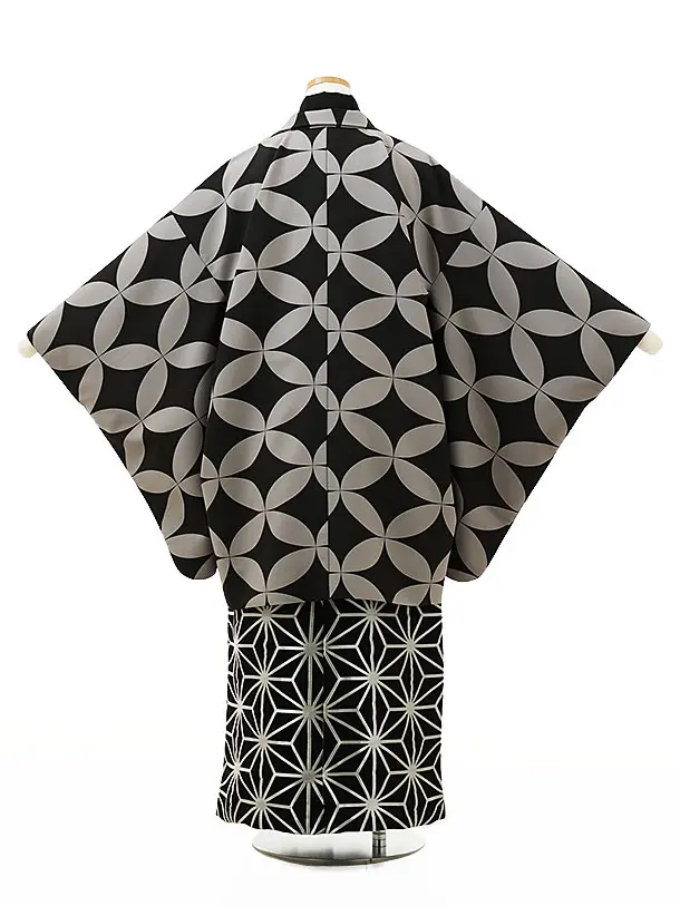 小学生男児袴レンタルZ330 黒地七宝×黒シルバー