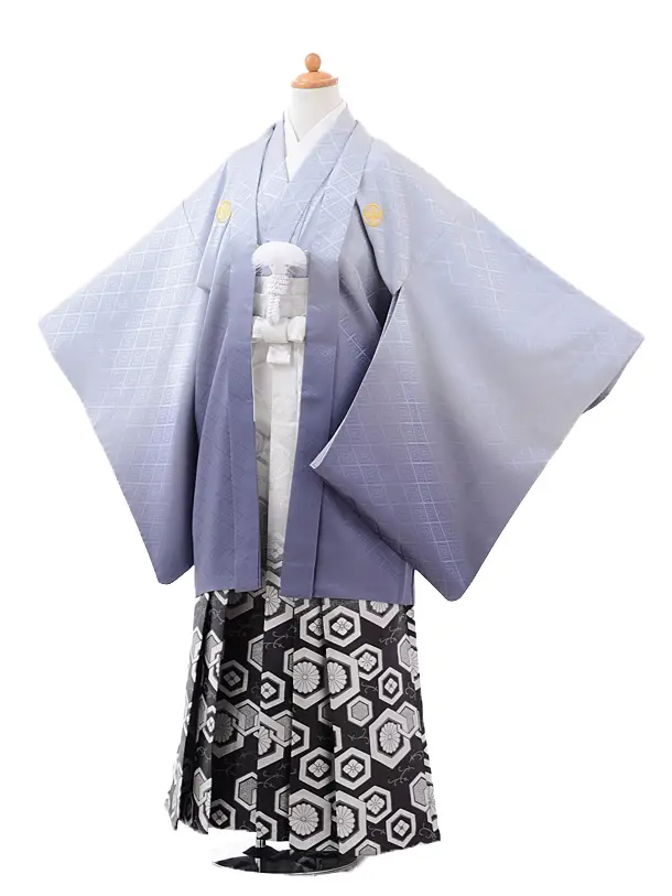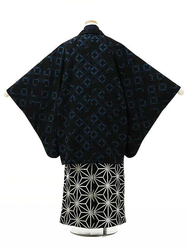 小学生男児袴レンタルZ331 黒地変り七宝×黒シルバー