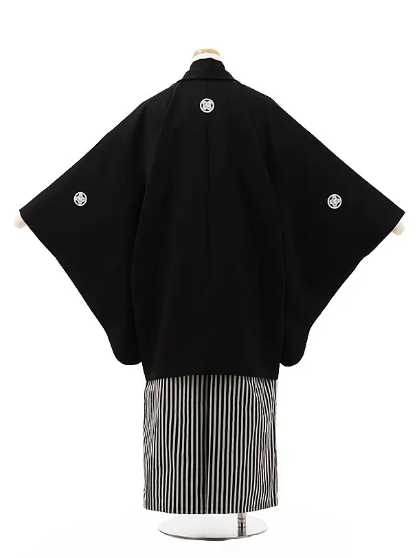 小学生 卒業式 袴 男児Z362 黒紋付×黒縞