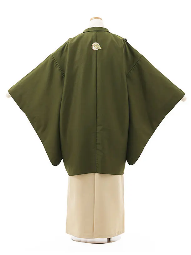かんたん着付小学生 卒業式 袴 男児Z435 オリーブグリーン紋付×ベージュ