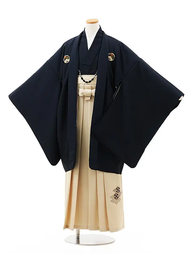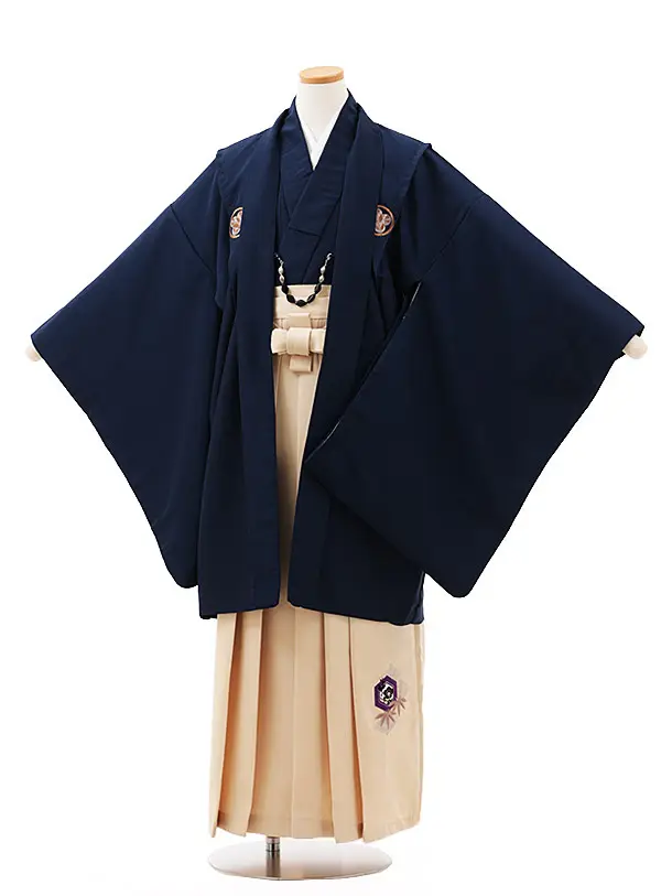 かんたん着付小学生 卒業式 袴 男児Z445 紺紋付×紺