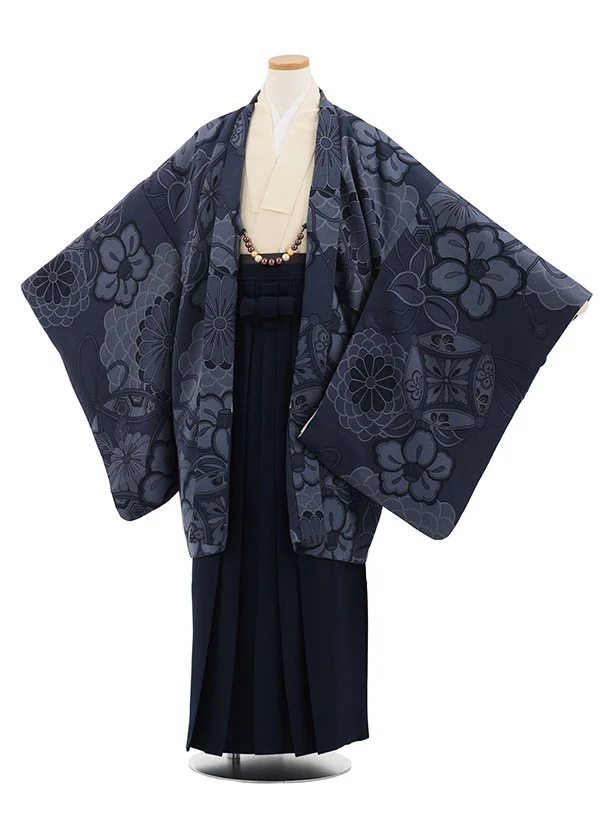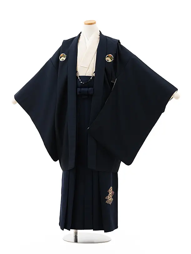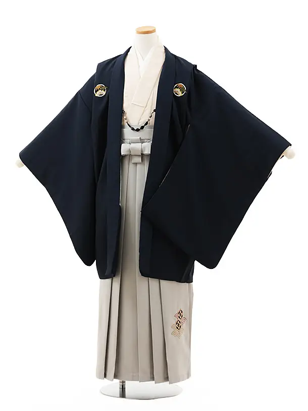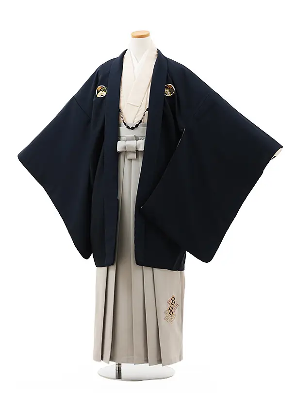 かんたん着付小学生 卒業式 袴 男児Z446 紺紋付×グレー