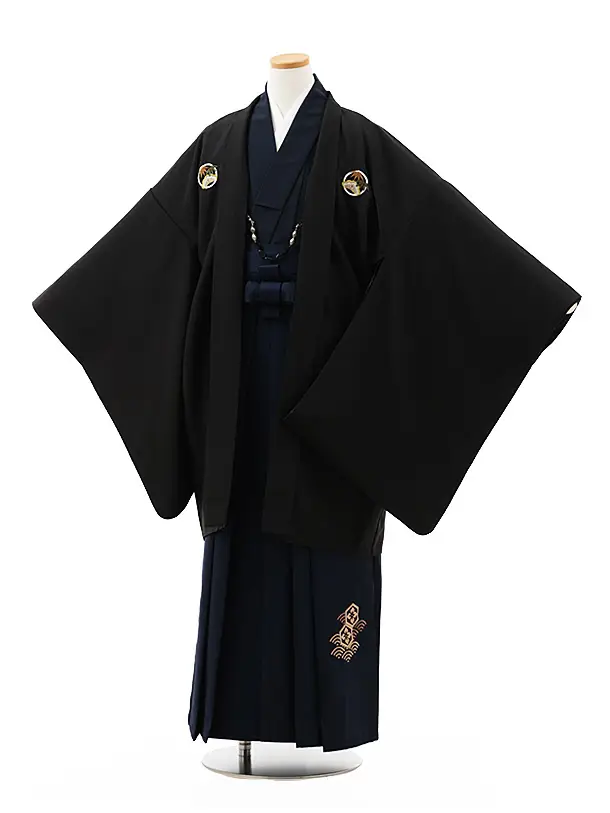 かんたん着付小学生 卒業式 袴 男児Z447 紺紋付×グレー