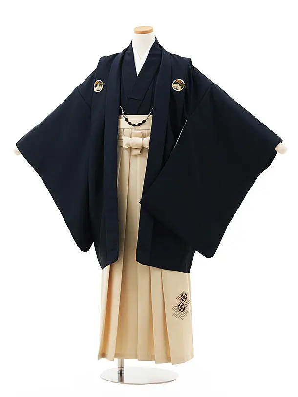 かんたん着付小学生 卒業式 袴 男児Z449 紺紋付×ベージュ