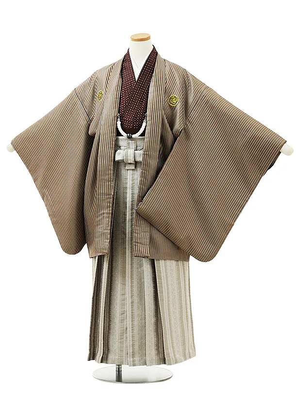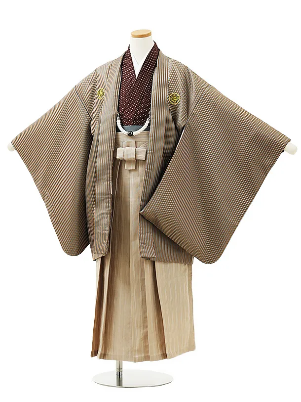 小学生男児袴レンタルZ579 小町Kids モカベージュ紋付×クリーム