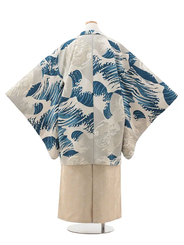小学生男児袴レンタルZ585 グレーブルー波に龍×アイボリー金