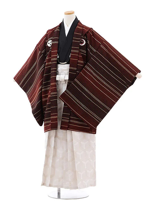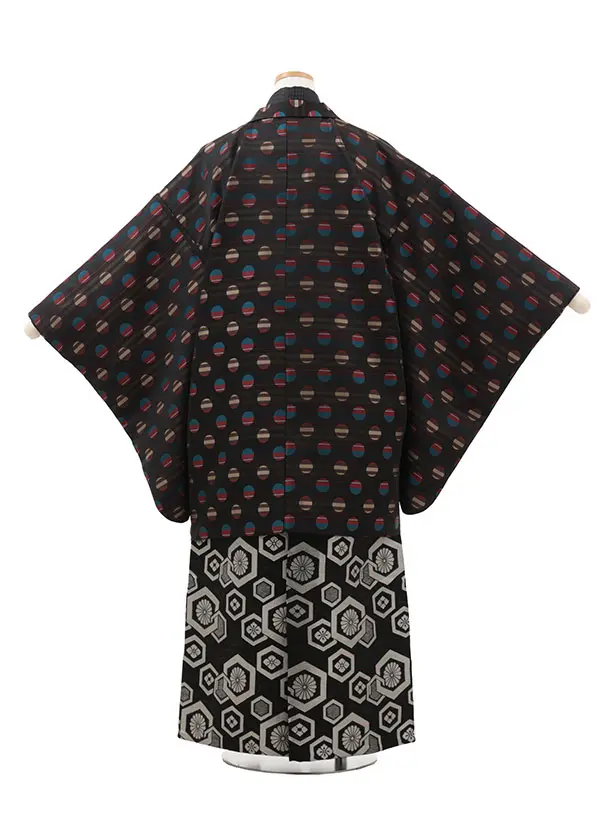 小学生男児袴レンタルZ593 ブラウンカラフルドット×黒銀