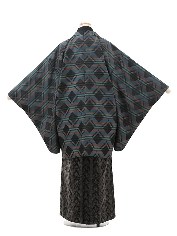 かんたん着付小学生 卒業式 袴 男児Z595 カラフル斜格子×黒