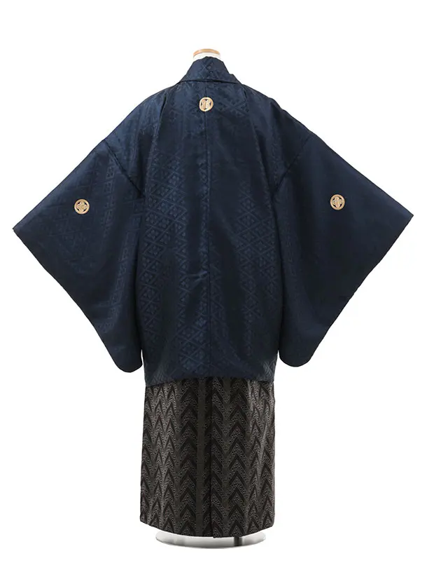 かんたん着付小学生 卒業式 袴 男児Z596 紺紋付×黒