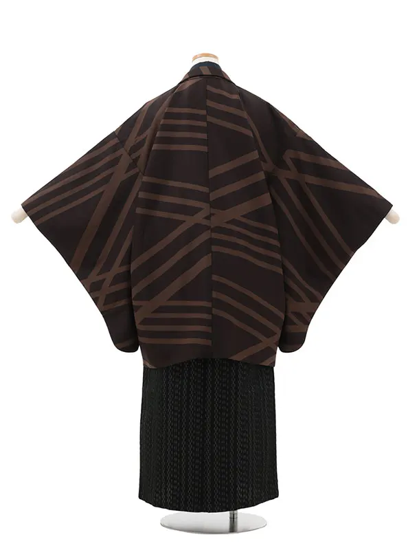 かんたん着付小学生 卒業式 袴 男児Z602 ブラウン変わり縞×黒