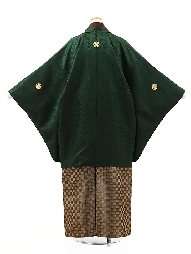小学生男児袴レンタルZ643 グリーン紋付×金市松ぼかし