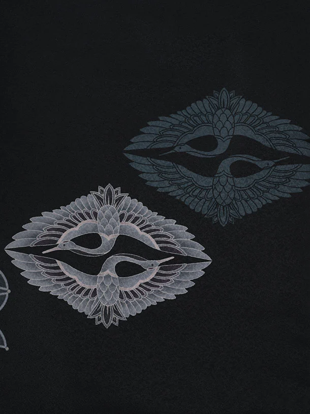 かんたん着付小学生男児袴レンタルZ731 黒地向鶴×ベージュ