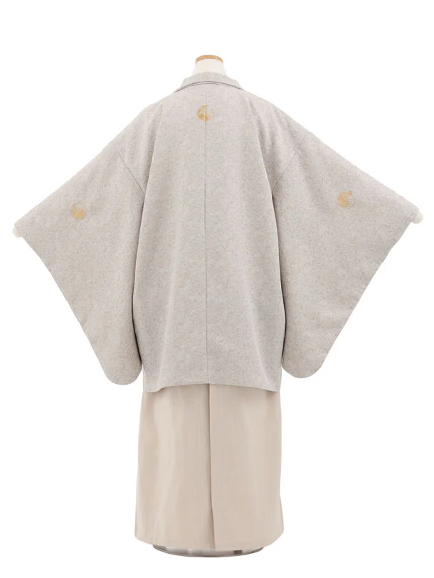かんたん着付小学生男児袴レンタルZ734 ベージュラメしゃれ紋×ベージュ縞