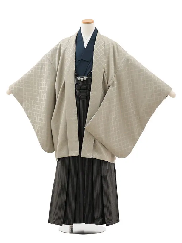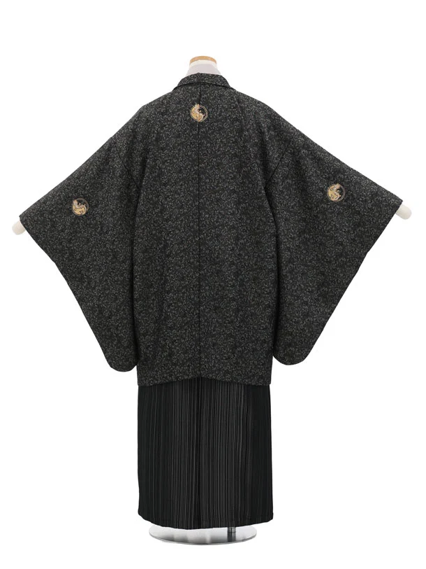 かんたん着付小学生男児袴レンタルZ735 黒地ラメしゃれ紋×黒ストライプ