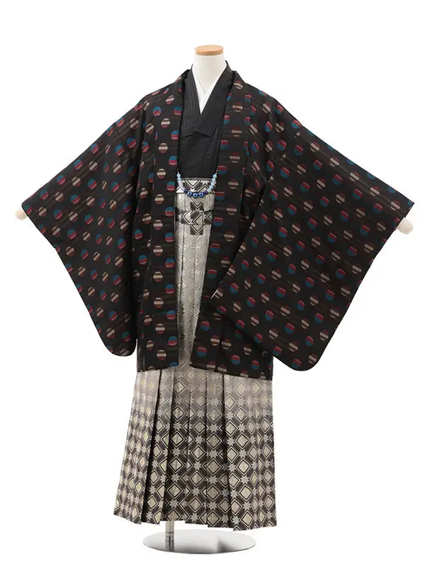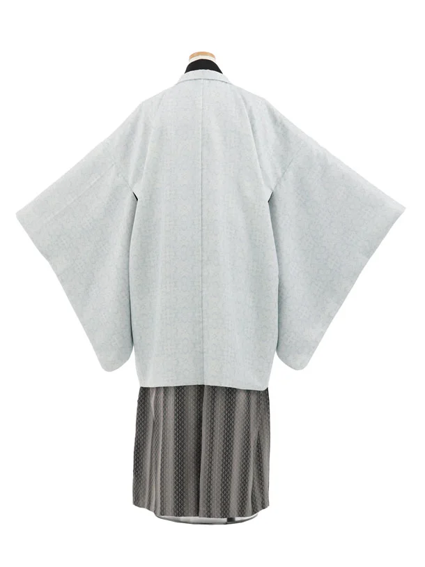 かんたん着付小学生男児袴レンタルZ742 グレー花菱×グレーストライプ