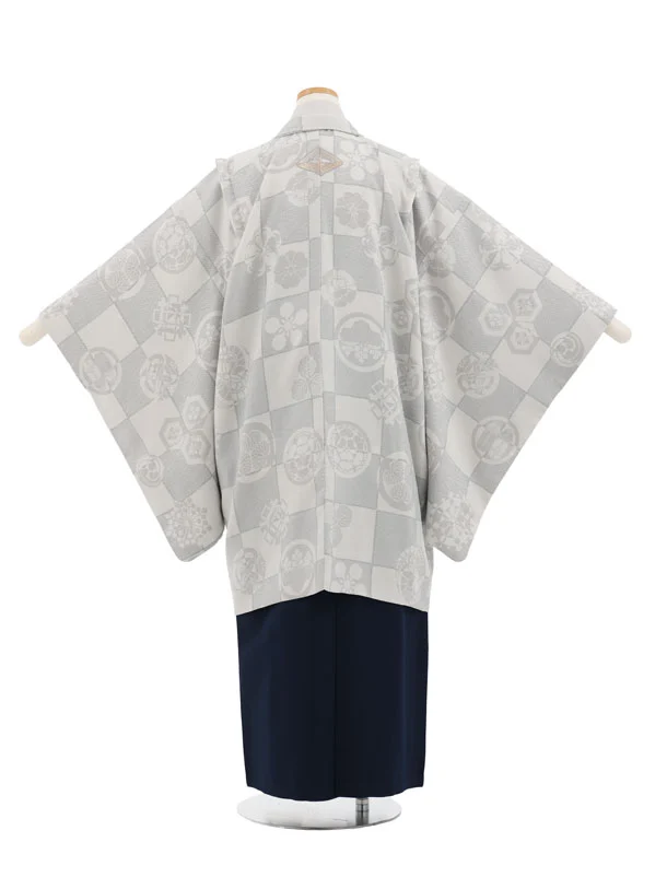 ジュニア袴男児Z744 華徒然 グレー市松しゃれ紋×紺袴