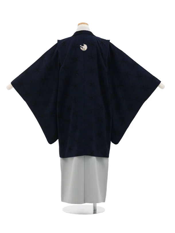 ジュニア袴男児Z746 JAPANSTYLE 紺地麻の葉しゃれ紋×グレー