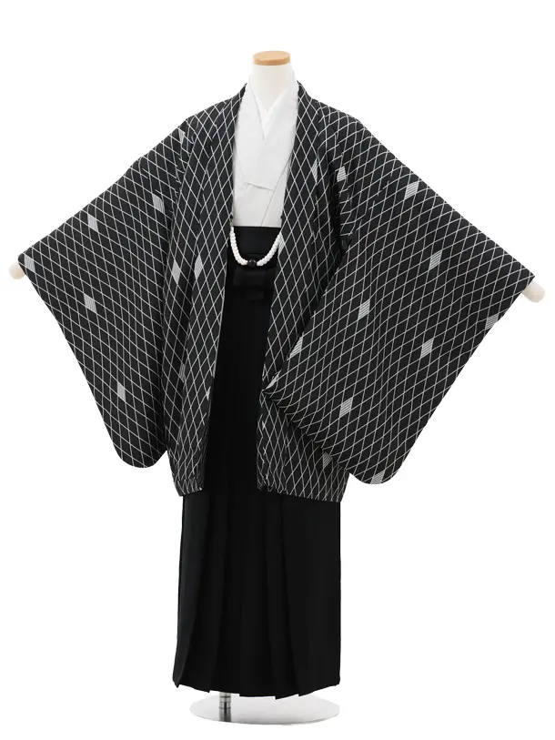かんたん着付小学生男児袴レンタルZ752 黒地花菱×ベージュストライプ