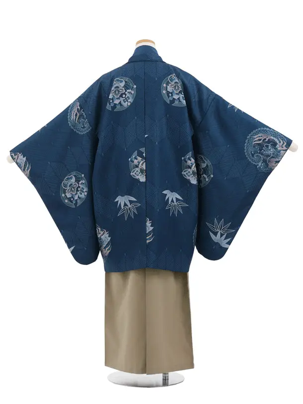 かんたん着付小学生男児袴レンタルZ753 薄紺丸紋龍×モカブラウン