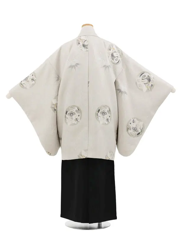 かんたん着付小学生男児袴レンタルZ755 ベージュ丸紋龍×黒