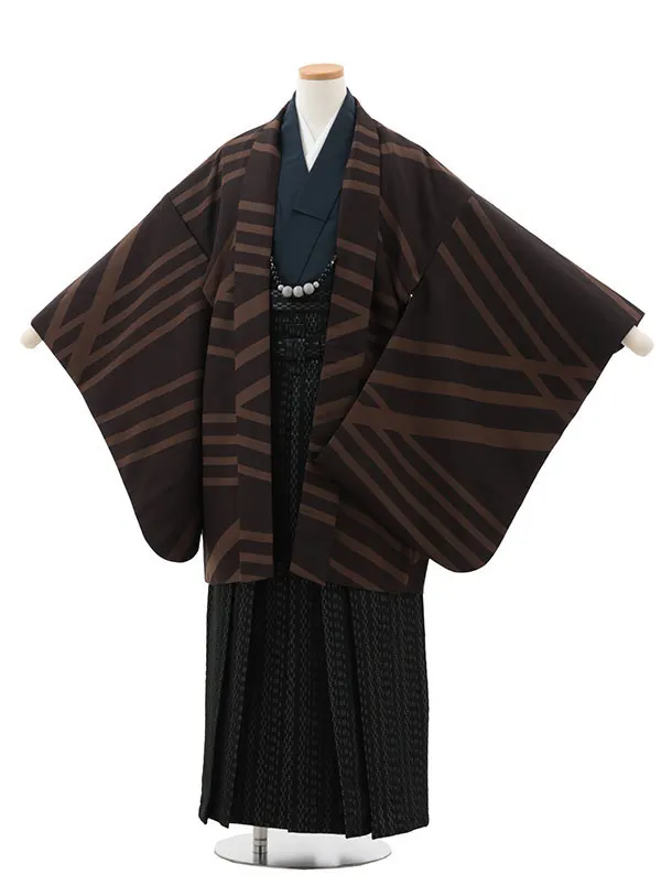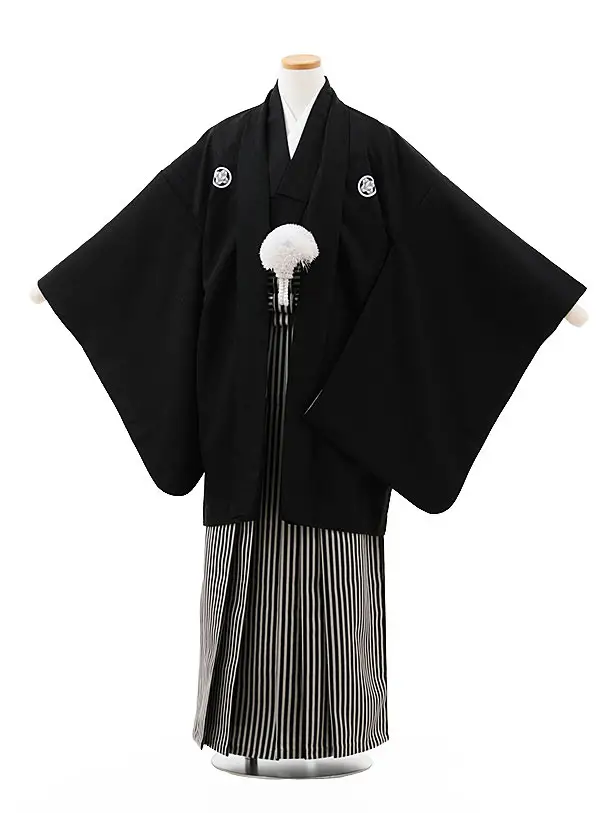 かんたん着付小学生男児袴レンタルZ756 黒地向鶴×ベージュ