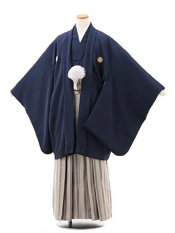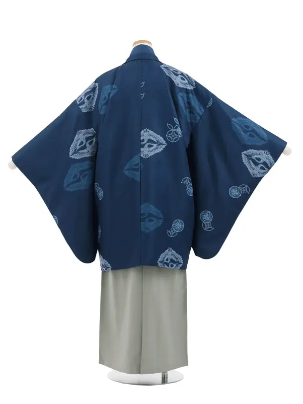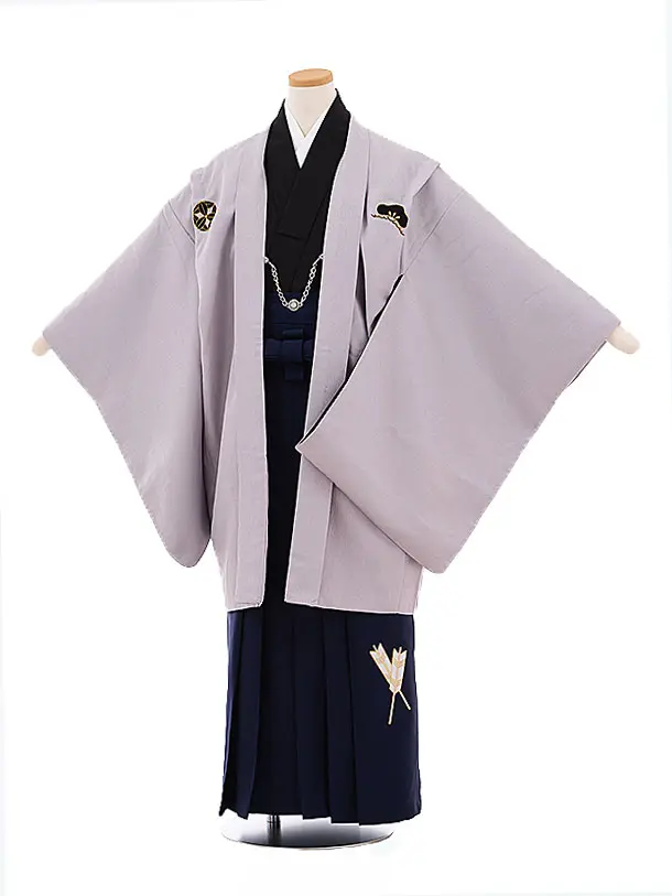 かんたん着付小学生男児袴レンタルZ757 薄紺向鶴×グレー
