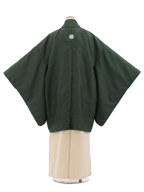 かんたん着付小学生男児袴レンタルZ786 カーキグリーン紋付×クリームベージュ