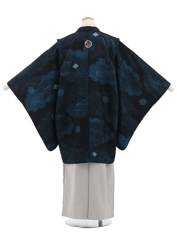 かんたん着付小学生男児袴レンタルZ799 紺雲取りしゃれ紋×グレー