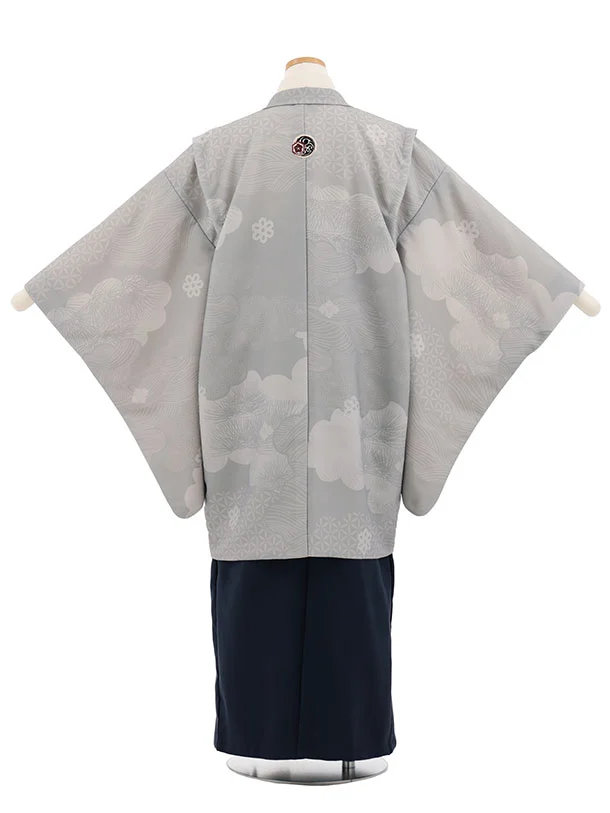 かんたん着付小学生男児袴レンタルZ801 グレー雲取りしゃれ紋×紺