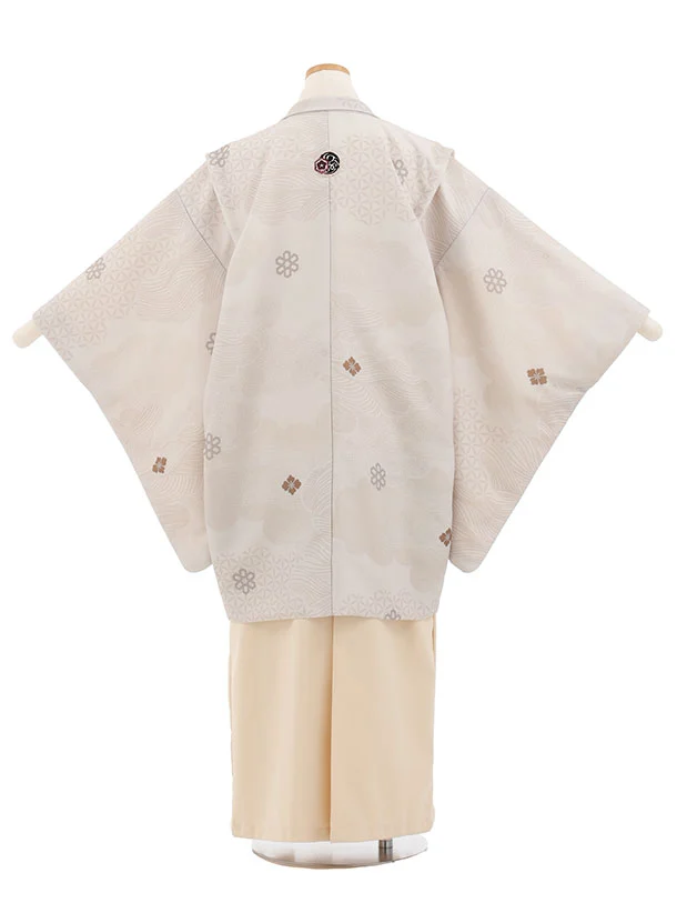 かんたん着付小学生男児袴レンタルZ802 うすベージュ雲取りしゃれ紋×ベージュ