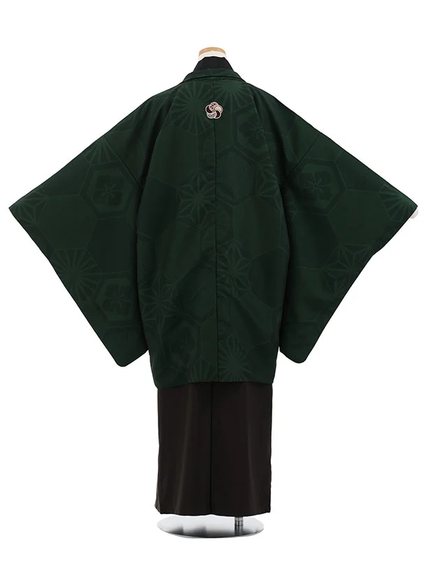 小学生男児袴レンタルZ884 小町Kids グリーン亀甲しゃれ紋×茶