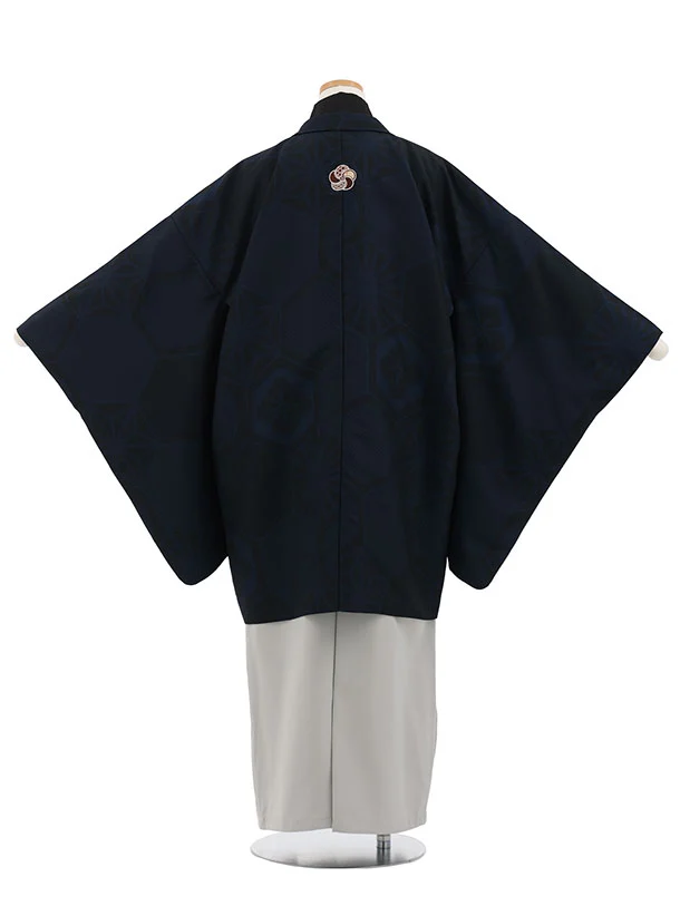 小学生男児袴レンタルZ885 小町Kids ネイビー亀甲しゃれ紋×グレー