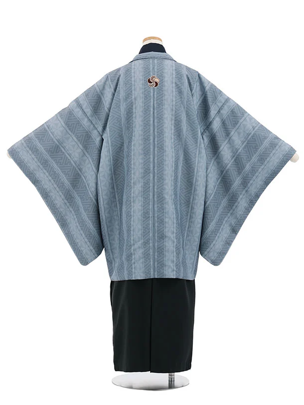 小学生男児袴レンタルZ887 小町Kids グレー紗綾形しゃれ紋×黒