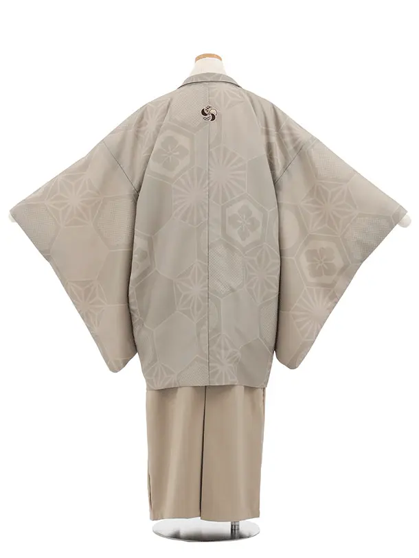 小学生男児袴レンタルZ888 小町Kids ベージュ亀甲しゃれ紋×モカベージュ