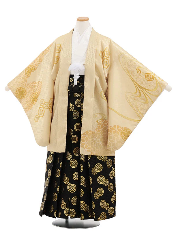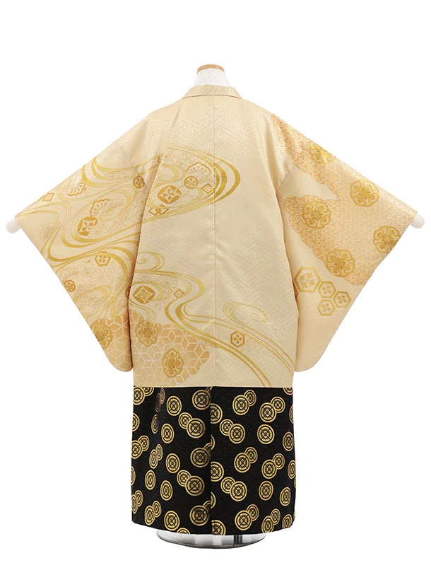 小学生男児袴レンタルZ890 イエローゴールド流水×黒金