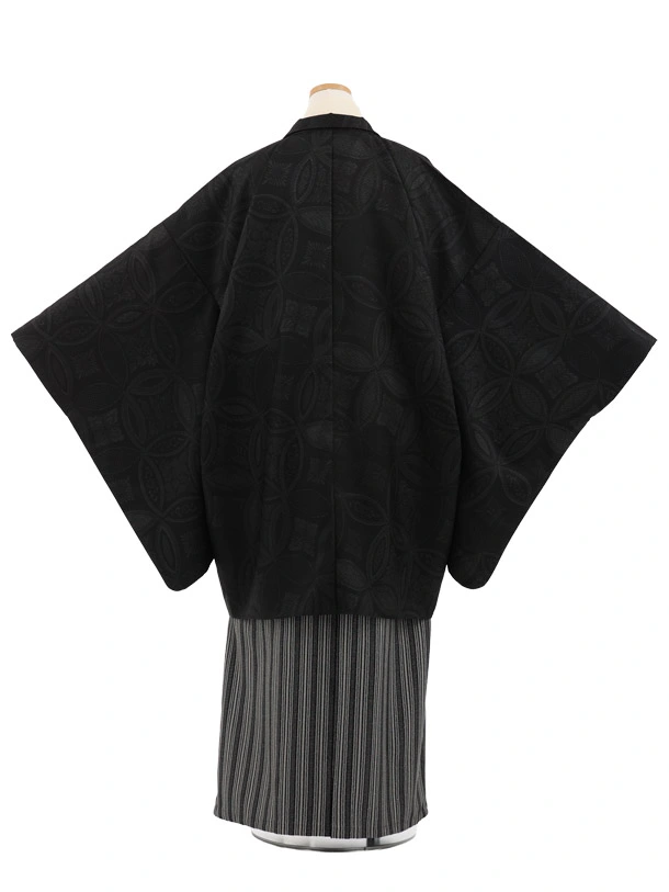 かんたん着付小学生男児袴レンタルZ894 黒地七宝×グレー銀ストライプ
