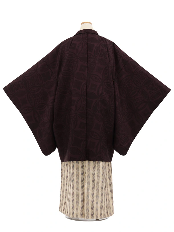 かんたん着付小学生男児袴レンタルZ898 濃紫七宝×ベージュストライプ