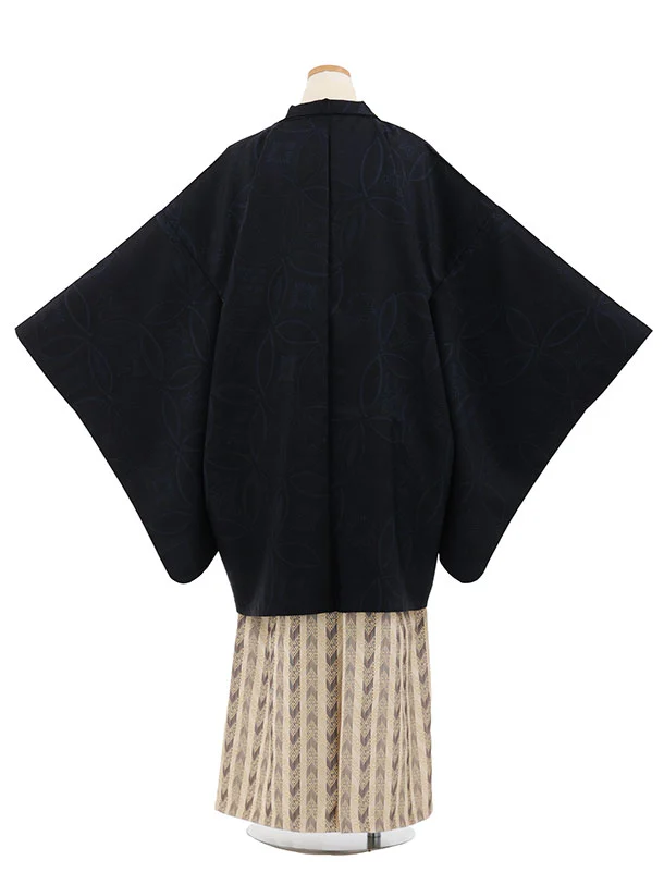 かんたん着付小学生男児袴レンタルZ904 濃紺七宝×ベージュ縞